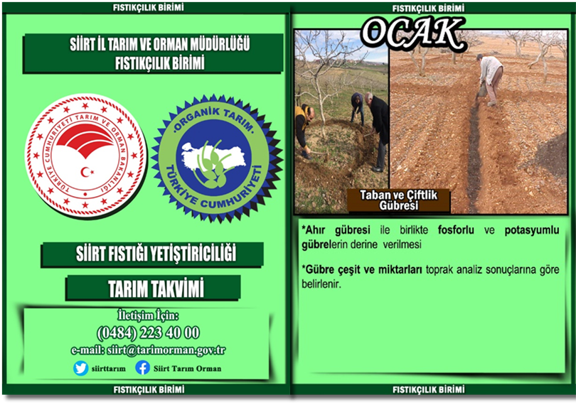 Değerli üreticilerimiz! Bölgemizde ocak ayı, Siirt Fıstığında taban gübresi uygulanabilecek bir dönem olup,  gübrelemenin önemi ve uygulama yöntemi hakkında bilgiler aşağıdaki gibi belirtilmiştir: