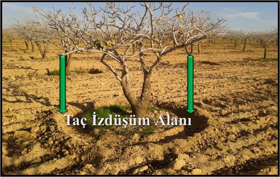 Fosforlu ve Potasyumlu gübreler ise Ocak ayında, mümkün olduğu kadar derine verilmek üzere ya ağacın taç iz düşümüne açılacak 20-30 cm derinliğinde ve 25-30 cm genişliğindeki banda, ya da bahçelerde ağacın taç iz düşüm kenarlarına traktöre bağlı pullukla açılacak hatlara verilerek üzerine de yanmış çiftlik gübresi uygulanıp üzeri kapatılmalıdır.