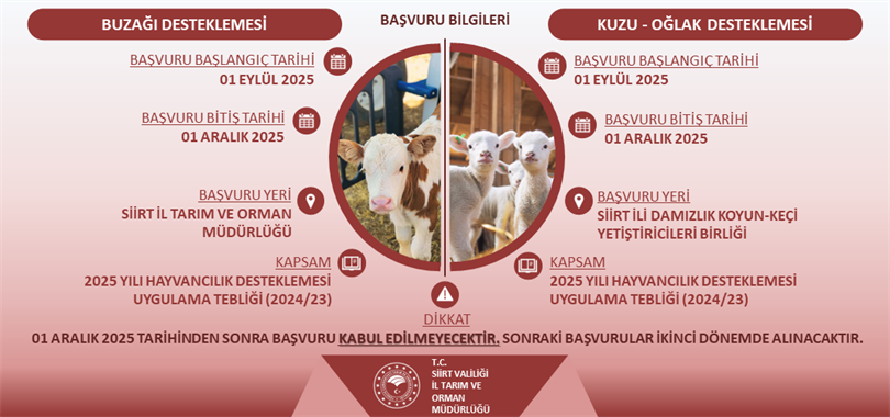 📌 Desteklemeden yararlanmak isteyen yetiştiricilerimizin belirtilen tarihler arasında başvurularını yapmaları önemle rica olunur.